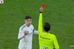 报道称,根据本场比赛主裁蒙特罗的比赛报告记录,巴尔韦德因“在未处于可争抢球距离的情况下踢人,并使用过度的力量”而被红牌罚下。