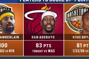 值得一提的是,在阿德巴约最后时刻逼进科比81分时,NBC切掉了凯尔特人vs马刺的全美直播信号,转而直播热火对阵奇才的比赛。