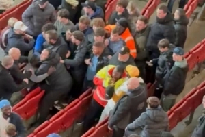 比赛结束后,埃弗顿球迷所在的看台发生了混乱,埃弗顿球迷互相殴打。