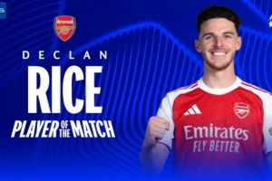 赖斯本场比赛为阿森纳踢满全场,并打进一球,欧冠官方宣布,他当选此役全场最佳球员。