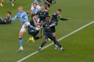 体育资讯03月18日讯 欧冠1/8决赛次回合,曼城对阵皇马。曼城角球机会,哈兰德等人抗议弗兰·加西亚手球,裁判没有表示。